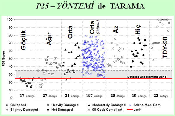 Bir binanın depremde ‘Göçer mi ?’ veya ‘Göçmez mi ?’ olup olmadığını anlayabilmek için, P25 – diye bir metod geliştirilmiştir. Bu metodun ayrıntılarını ‘Sıfır Can Kaybı’ başlığı altında verilmiş bilimsel makalelerde bulmak kabildir.